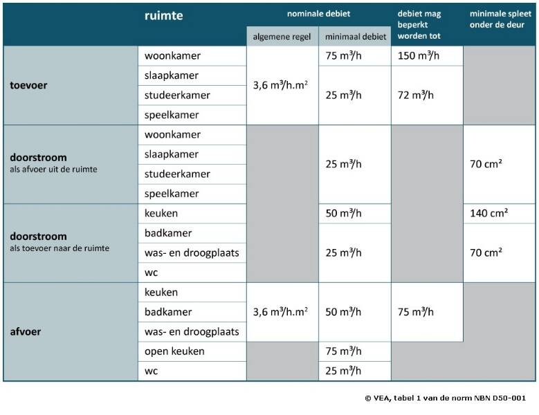🌿 Ventilatieverlies volgens NBN D50-001 (tabel 1)