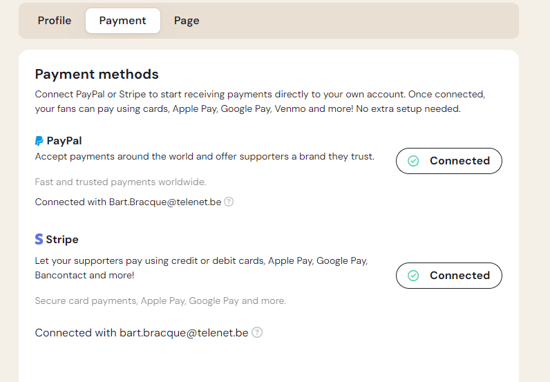 Alleen nogmaar mezelf gedoneerd om te zien of het werkte en inderdaad het werkt en 0.29 Euro belastingen erop Betaald. Https://www.ko-fi.com en veel succes
